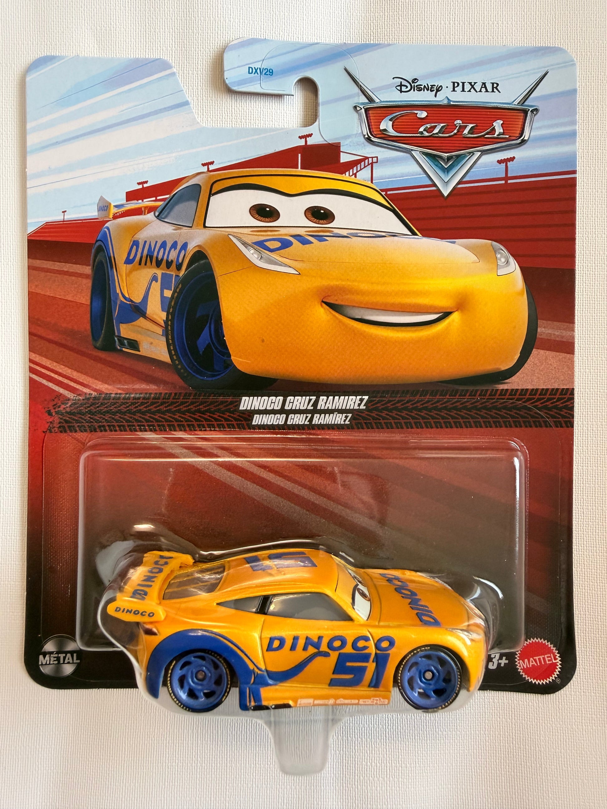 Dinoco Cruz Ramirez is an evolution of the beloved Cars 3 protagonist who, after proving herself on the Piston Cup circuit, signs with the prestigious Dinoco team and takes on car number 51. Originally a trainer at the Rust-eze Racing Center, Cruz steps into competitive racing with Lightning McQueen's encouragement and goes on to win the Florida 500 before embracing her new role with Dinoco. With her sleek yellow-and-blue livery and fierce determination, Dinoco Cruz Ramirez embodies optimism, skill, and resilience, showcasing her rise from coach to championship-level racer in the Cars universe.