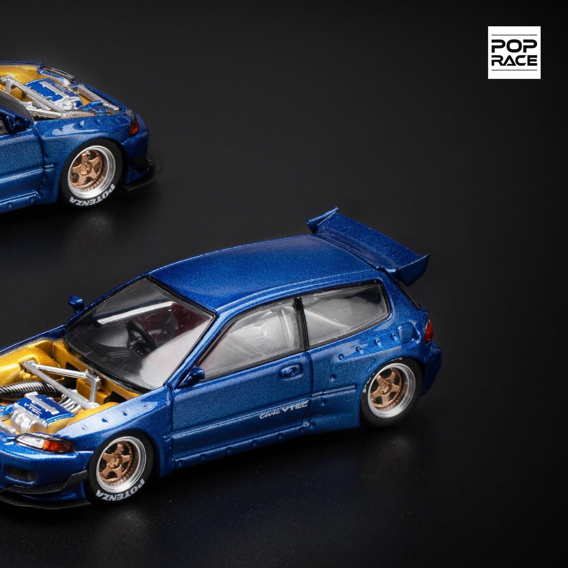 Pop Race Honda Civic EG6 Pandem Metallic Blue with Open Hood 1:64 Diecast Model - PR640174