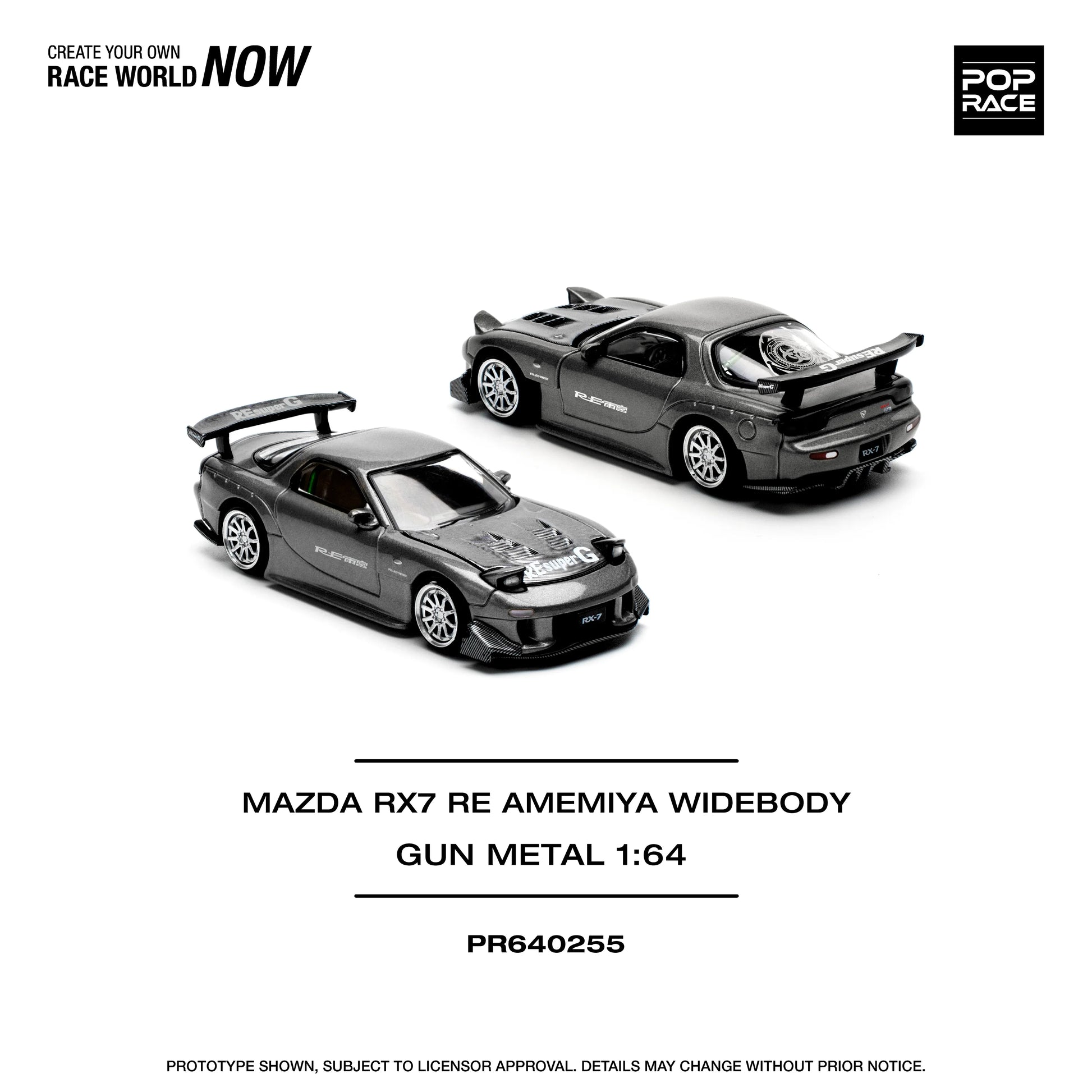 Add iconic JDM tuner style to your diecast collection with the Pop Race 1:64 scale Mazda RX7 Re-Amemiya in Gun-Metal. Featuring detailed Re-Amemiya body kit styling, realistic interior, and precision diecast construction, this model is perfect for diecast collectors and Mazda RX7 enthusiasts.