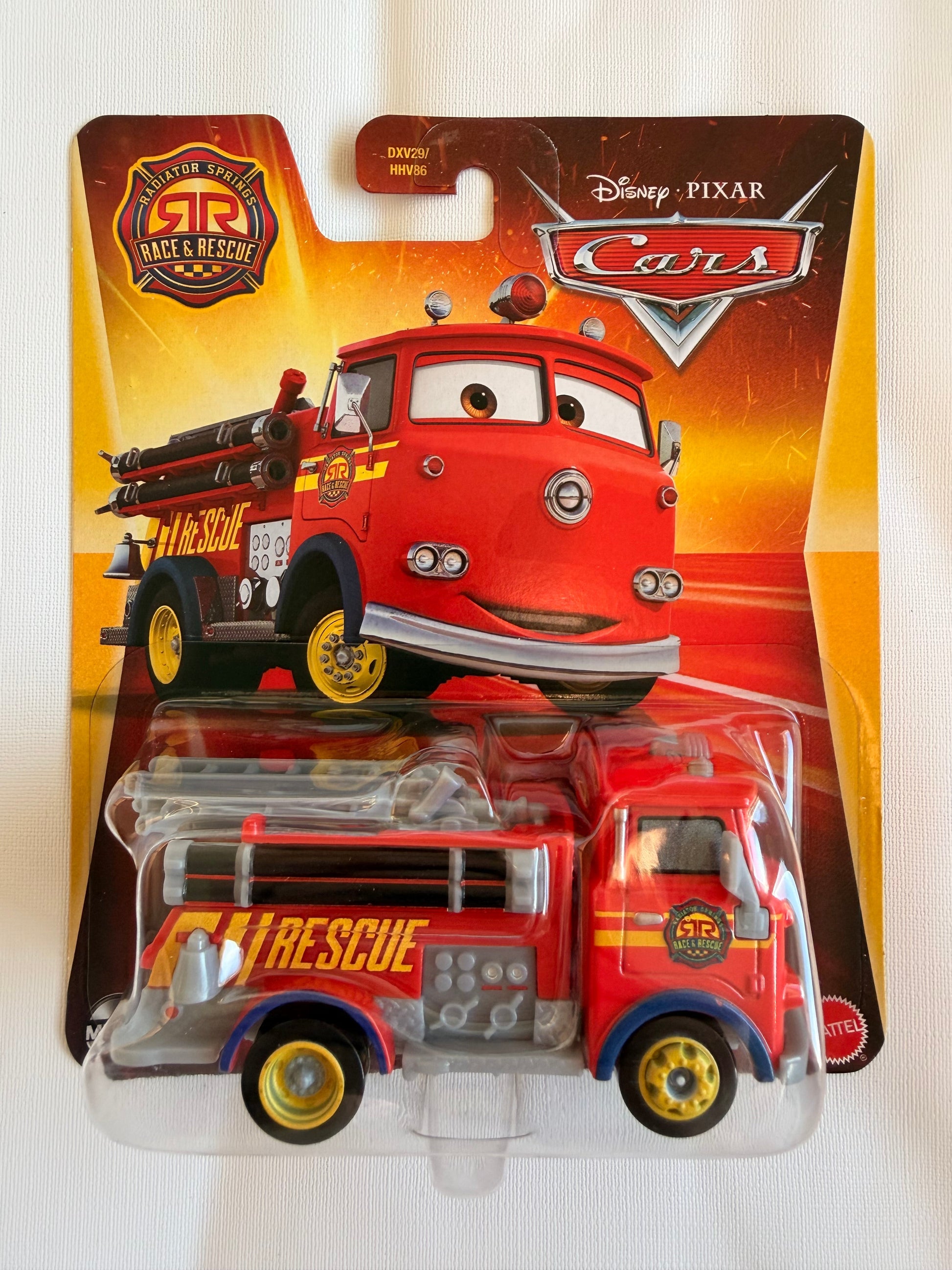 Race & Rescue Red is a heroic variant of the classic fire truck from Pixar's Cars franchise. Equipped for emergency response, Red combines his traditional firefighting skills with upgraded tools and gear for rescue missions. With his bright red paint, friendly demeanor, and steadfast dedication, Race & Rescue Red embodies bravery, reliability, and community spirit, making him an essential part of Radiator Springs' rescue team while retaining the charm and personality of the town's beloved fire truck.
